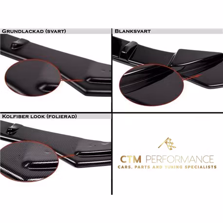 De flesta av våra stylingprodukter kan fås i 3 alternativ: Grundlack (svart), högblank svart eller kolfiber look (folierad).
